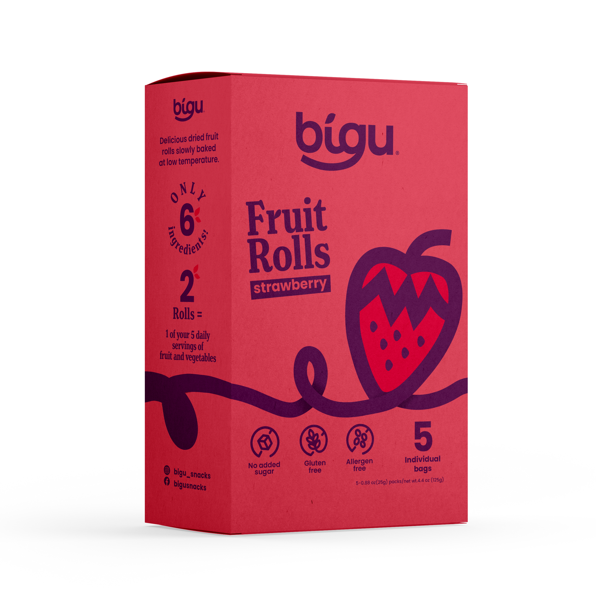 Enjoy the naturally sweet taste of strawberries with Bigu Strawberry Fruit Rolls, now available in a convenient 5-pack display. Made with 100% fruit and nothing else, these rolls are gluten-free, vegan-friendly, and contain no added sugar — just pure strawberry goodness. Each unit delivers a portion of fruit that’s perfect for lunchboxes, after-school snacks, or a clean energy boost on the go.